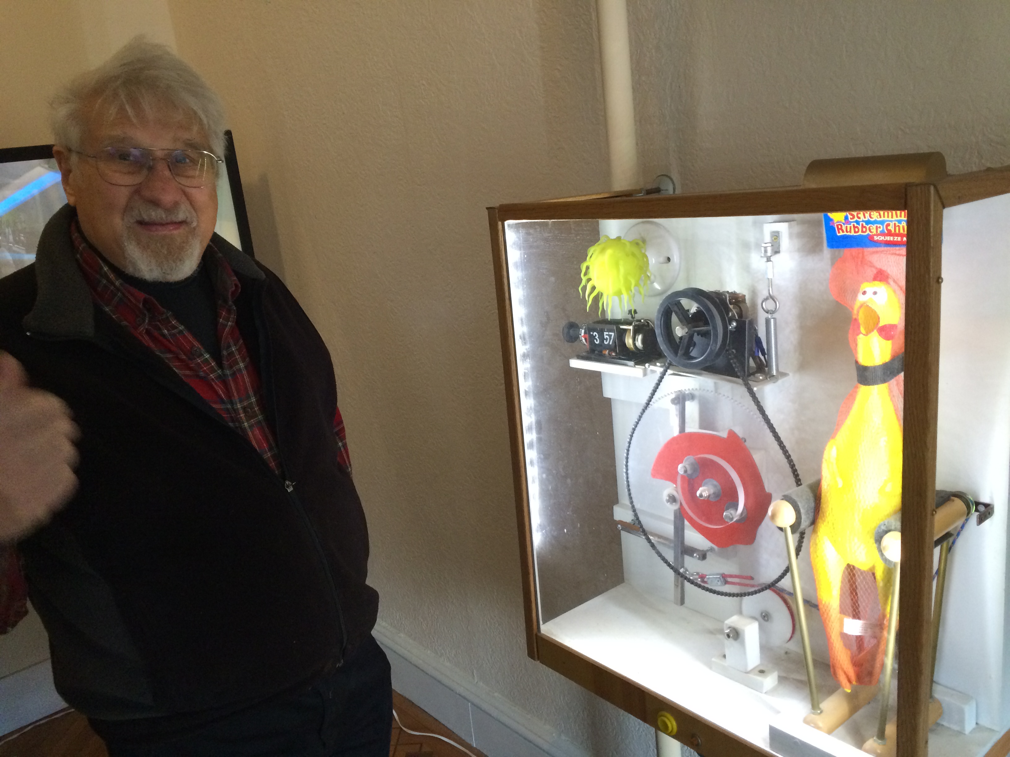 I later Googled Bob, and learned about his career in Bell Laboratories, and later his adventures into a bizarre type of science-based art. His work ranged from colorful light refraction displays to a rubber-chicken based alarm clock. He had even displayed his pinball machine in an art gallery.