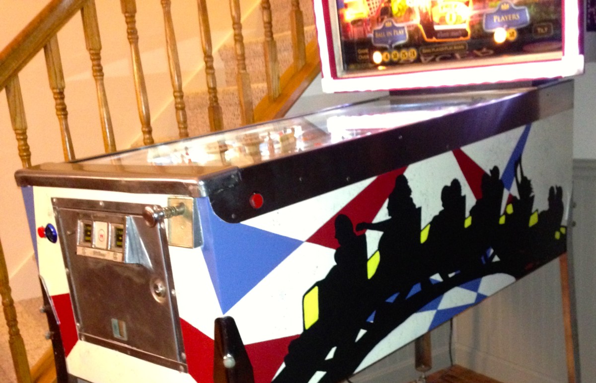 The cabinet art is my own unique and custom design. I tried to represent the style of the era- which often used primary colors, silhouettes, and a “webbing” technique that was originally used to mask inconsistencies in the painting,